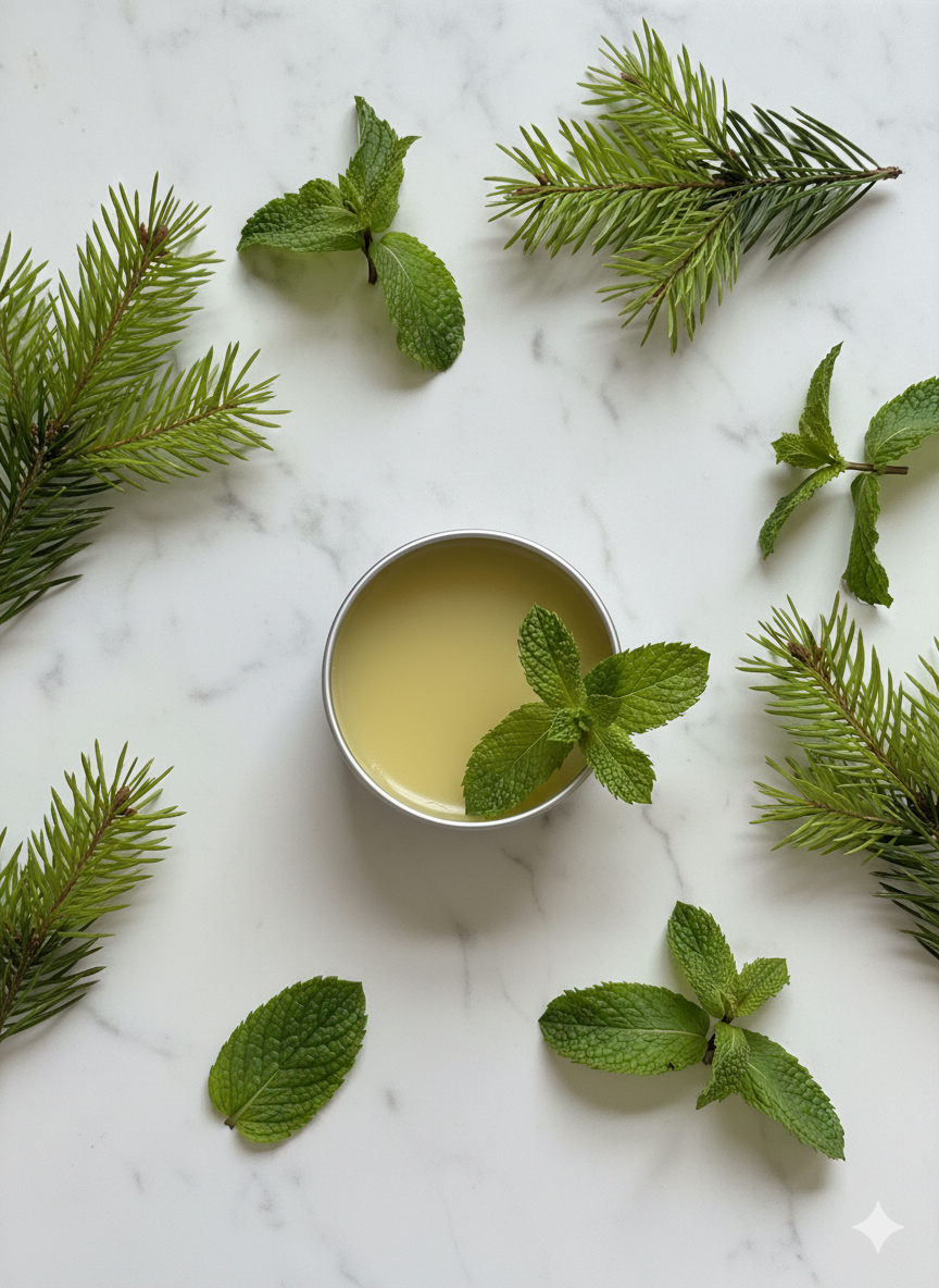 Stop that headache in it's tracks. This salve contains mint to cool inflammation and pine for its pain-relieving properties. Massage the salve into your temples, forehead, back of neck, and between your shoulder blades when suffering from a headache. Close your eyes, breathe deeply and consciously allow the muscles of your face, jaw, and shoulders to relax.