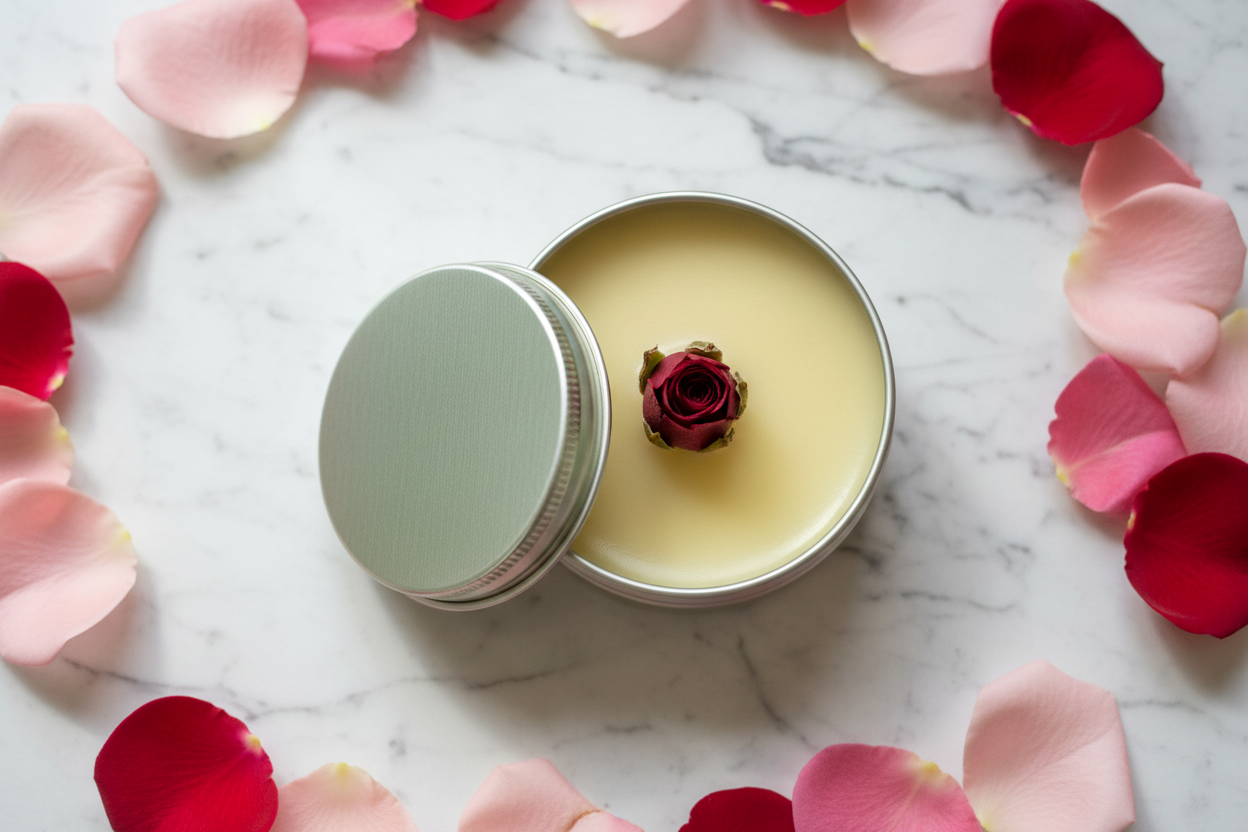 Achieve a radiant, supple complexion. This soft balm harnesses the skin-calming properties of rose petals and the reparative action of rosehip seed oil. Shea butter is high in vitamins A and E and excellent for treating weathered or damaged skin, while sweet almond oil provides beneficial fatty acids and helps soften skin.