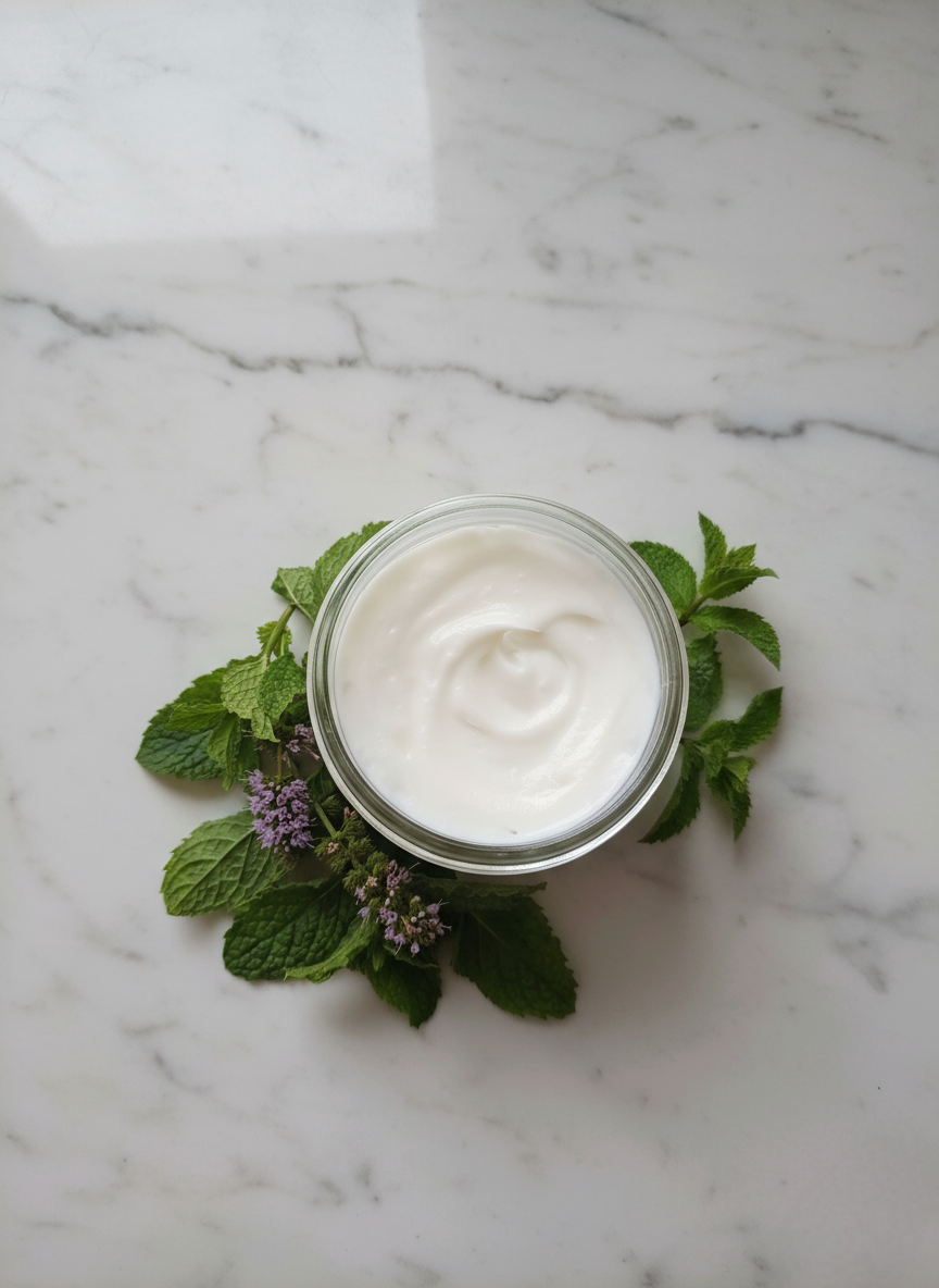 Cooling relief after a long day in the sun. The menthol in mint makes this lotion especially cooling, while aloe helps soothe overheated & inflamed skin tissue. Sunflower oil was chosen for this lotion as it's particularly effective at healing damaged skin. A few drops of peppermint essential oil contribute a heightened chilling effect along with a dash of mild pain relief. Apply this lotion as often as needed to help ease the discomfort of sunburn and other hot, flushed skin conditions.